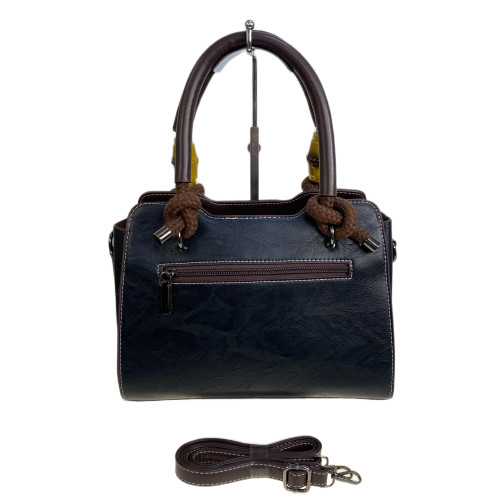 Элегантная женская сумка из искусственной кожи. Закрывается на молнию, внутри карман на молнии и открытый карман. Сумка имеет удобные ручки и длинный плечевой ремень. На задней стенке карман на молнии.