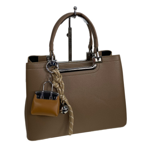 Элегантная женская сумка из искусственной кожи. Сумка имеет три отделения, центральное закрывается на молнию, два других на магнитную кнопку, внутри дополнительный карман на молнии. В комплекте длинный плечевой ремень и оригинальный брелок.