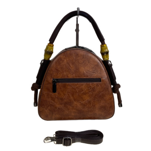 Элегантная женская сумка из искусственной кожи. Закрывается на молнию, внутри карман на молнии и открытый карман. Сумка имеет удобную ручки и длинный плечевой ремень. На задней стенке карман на молнии.