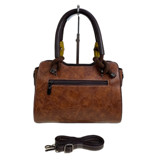 Элегантная женская сумка из искусственной кожи. Закрывается на молнию, внутри карман на молнии и открытый карман. Сумка имеет удобные ручки и длинный плечевой ремень. На задней стенке карман на молнии.