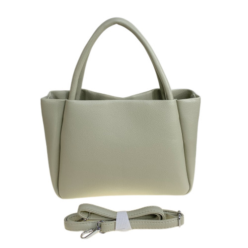 Элегантная женская сумка из искусственной кожи. Сумка имеет три отделения: центральное закрывается на молнию, два крайних отделения - открытые. В комплекте длинный плечевой ремень.