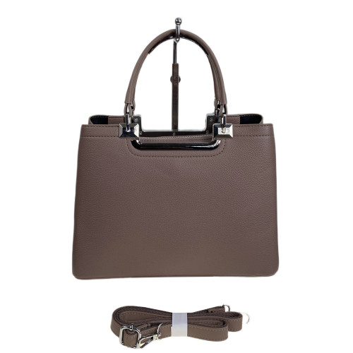 Элегантная женская сумка из искусственной кожи. Сумка имеет три отделения, центральное закрывается на молнию, два других на магнитную кнопку, внутри дополнительный карман на молнии. В комплекте длинный плечевой ремень и оригинальный брелок.