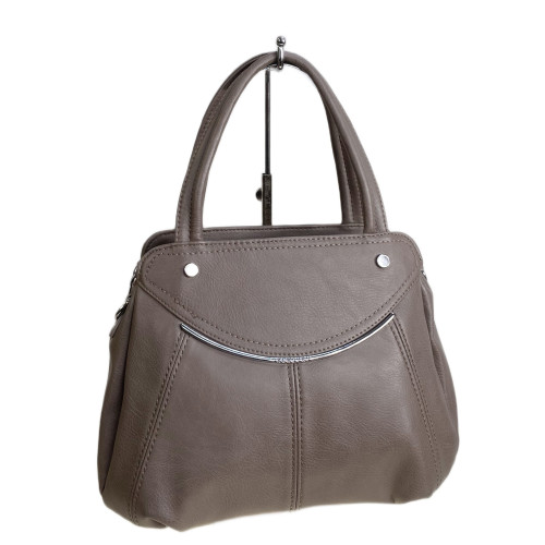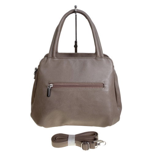Классическая женская сумка из искусственной кожи. Сумка закрывается на молнию, внутри два отделения разделенных карманом на молнии, дополнительный карман на молнии и открытый карман. Снаружи на задней стенке карман на молнии. В комплекте длинный плечевой ремень.