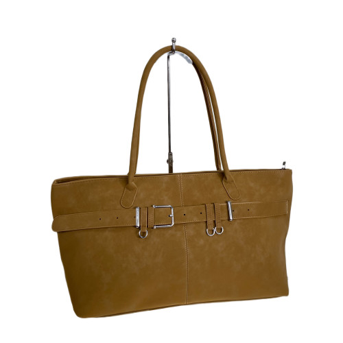 Вместительная женская сумка из искусственной кожи. Сумка закрывается на молнию, внутри одно основное отделение, дополнительный карман на молнии и открытый карман. В комплекте удлиненные ручки.
