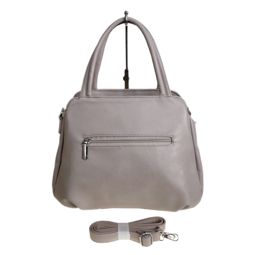 Классическая женская сумка из искусственной кожи. Сумка закрывается на молнию, внутри два отделения разделенных карманом на молнии, дополнительный карман на молнии и открытый карман. Снаружи на задней стенке карман на молнии. В комплекте длинный плечевой ремень.