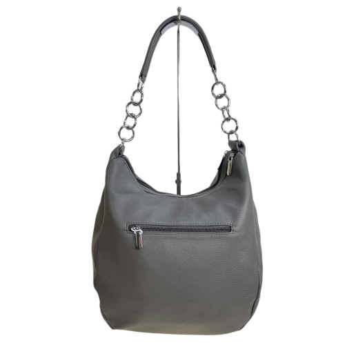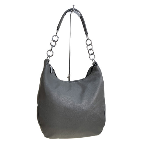 Вместительная женская сумка из искусственной кожи. Сумка имеет два отделения, каждое закрывается на молнию, внутри дополнительный карман на молнии и открытый карман. Снаружи на задней стенке карман на молнии. В комплекте удлиненная ручка.