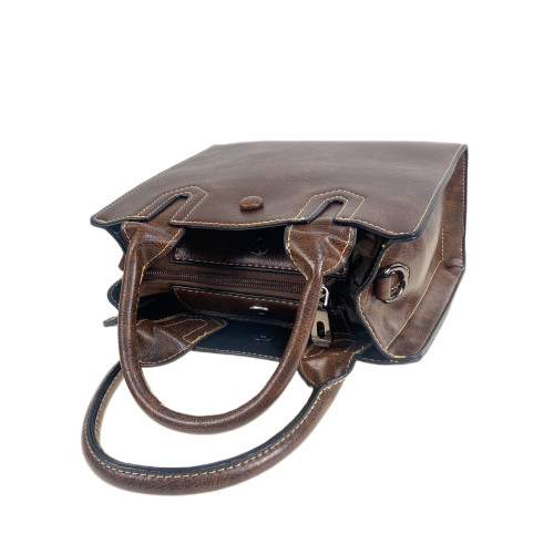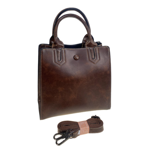 Элегантная женская сумка из искусственной кожи. Сумка имеет три отделения: центральное закрывается на молнию, два крайних на магнитные кнопки. Внутри центрального отделения дополнительный карман на молнии и открытый карман. В комплекте длинный плечевой ремень.