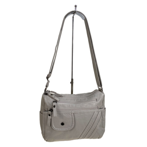 Оригинальная женская сумка из мягкой искусственной кожи. В комплекте плечевой ремень, регулируется по длине.Сумка имеет два отделения, каждое закрывается на молнию, внутри карман на молнии .Снаружи, на задней стенке, карман на молнии. На передней стенке два прорезных кармана на молнии. По бокам два открытых кармана.