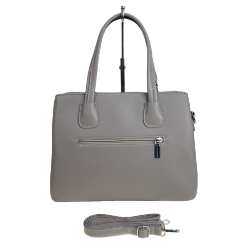 Классическая женская сумка из искусственной кожи . Закрывается на молнию, внутри три отделения и два открытых кармана. Снаружи на задней стенке карман на молнии. Сумка имеет удобные ручки и длинный плечевой ремень.