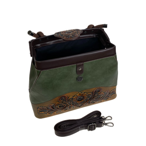 Элегантная женская сумка из искусственной кожи. Закрывается на грот с магнитной кнопкой, внутри карман на молнии и открытый карман. Сумка имеет удобную ручки и длинный плечевой ремень. На задней стенке карман на молнии.
