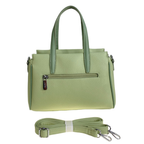 Универсальная женская сумка из мягкой искусственной кожи. Сумка имеет два отделения, каждое закрывается на молнию, внутри карман на молнии и открытый карман. Снаружи на задней стенке карман на молнии. В комплекте длинный плечевой ремень.