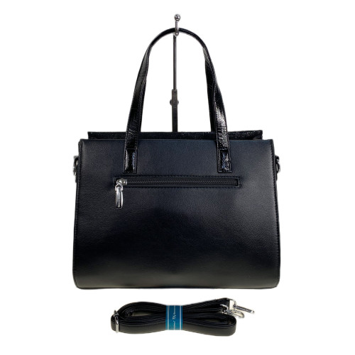 Элегантная женская сумка из искусственной кожи и натуральной замши. Сумка закрывается на молнию, внутри два отделения разделенных карманом на молнии , дополнительный карман на молнии и открытый карман. Сумка имеет удобные ручки и длинный плечевой ремень. На задней стенке карман на молнии.