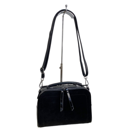 Элегантная женская сумка из искусственной кожи и замши. Сумка имеет два отделения, каждое закрывается на молнию, внутри карман на молнии и открытый карман. Сумка имеет удобную ручки и длинный плечевой ремень. На задней стенке карман на молнии.