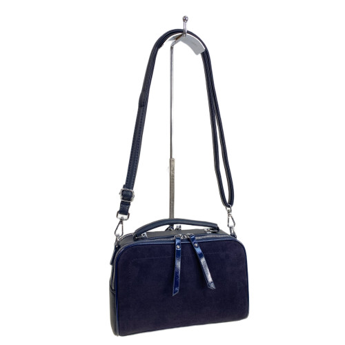 Элегантная женская сумка из искусственной кожи и замши. Сумка имеет два отделения, каждое закрывается на молнию, внутри карман на молнии и открытый карман. Сумка имеет удобную ручки и длинный плечевой ремень. На задней стенке карман на молнии.