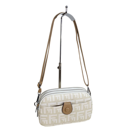 Компактная женская сумка из искусственной кожи в формате кросс боди. Сумка имеет три отделения, каждое закрывается на молнию. Снаружи на передней стенке дополнительный карман. В комплекте длинный плечевой ремень .