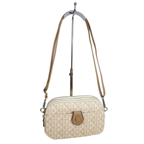 Компактная женская сумка из искусственной кожи в формате кросс боди. Сумка имеет три отделения, каждое закрывается на молнию. Снаружи на передней стенке дополнительный карман. В комплекте длинный плечевой ремень .