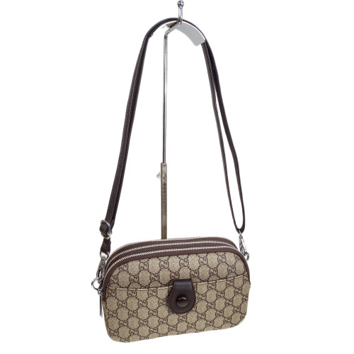 Компактная женская сумка из искусственной кожи в формате кросс боди. Сумка имеет три отделения, каждое закрывается на молнию. Снаружи на передней стенке дополнительный карман. В комплекте длинный плечевой ремень .