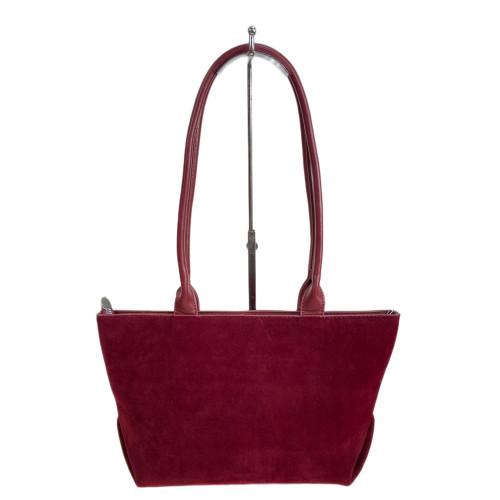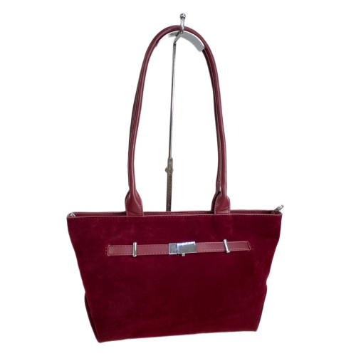 Элегантная женская сумка из искусственной замши. Закрывается на молнию, внутри одно основное отделение и карман на молнии. Сумка имеет удлиненные ручки.