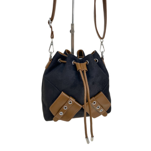 Элегантная женская сумка из искусственной замши. Основное отделение закрывается на надежную завязку - замок на шнурке, обеспечивающую быстрый и легкий доступ к содержимому. Внутри одно основное отделение и карман на молнии. Сумка имеет длинный плечевой ремень.