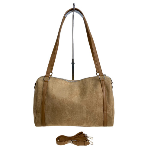 Элегантная и стильная женская сумка из велюра (искусственной замши). Сумка закрывается на молнию, внутри одно отделение и карман на молнии. Сумка имеет удобные ручки и длинный плечевой ремень.