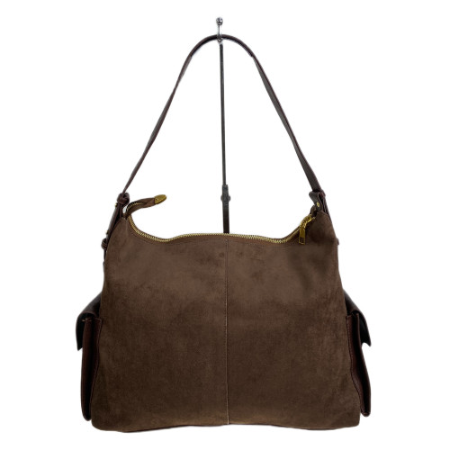 Элегантная женская сумка из искусственной замши. Закрывается на молнию, внутри одно основное отделение, дополнительный карман на молнии и открытый карман. Сумка имеет удлиненную ручку. Снаружи, на передней стенке скрытый карман на магнитной кнопке. По бокам с двух сторон накладные карманы на магнитной кнопке.