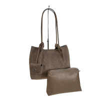 Женская сумка из искусственной замши. Сумка имеет пару удобных ручек, удобно носить на плеч, в руках или на запястье. Сумка закрывается на кнопку, внутри косметичка из искусственной кожи.