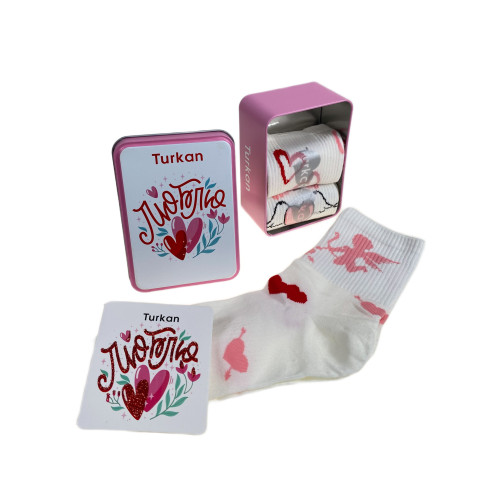 Подарочный набор женских носков. В коробке 3 пары, принт "люблю". Размер носков: 36-41./p>