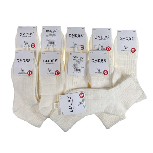 Тёплые и комфортные женские носки из шерсти ламы. Эластичные и хорошо дышат. Размер единый 36-41. В упаковке 10 пар.