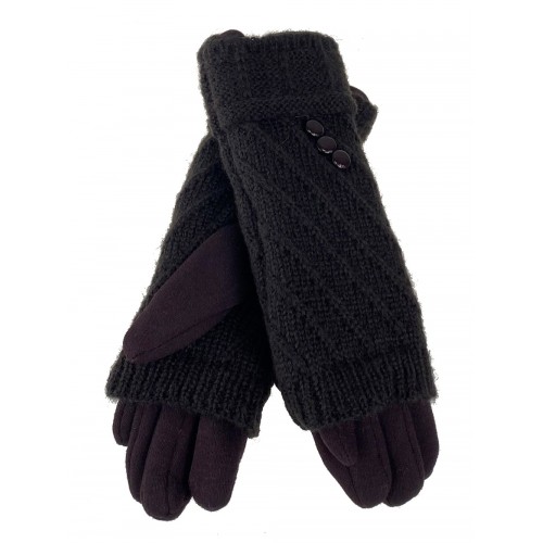 Элегантные текстильные перчатки, утеплённые ворсистым флисом, и шерстяные митенки, декорированные кнопками. Сочетаются с тёплым пальто и другой верхней одеждой. Цвет шоколад.