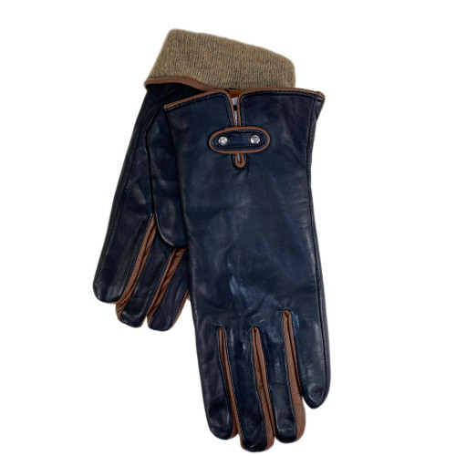 Женские демисезонные перчатки из натуральной кожи, цвет черный с коричневым