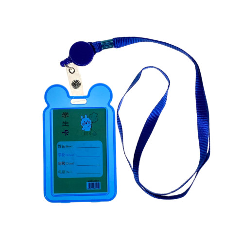 Бейдж для пропуска с рулеткой и лентой, цвет синий