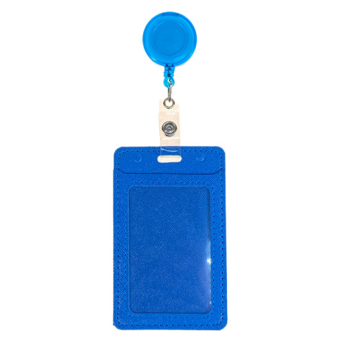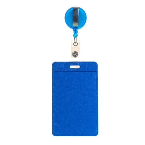 Бейдж с лентой на рулетке вертикальный, цвет голубой