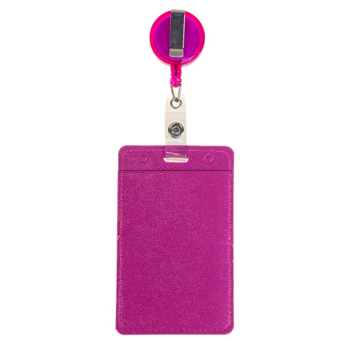 Бейдж с лентой на рулетке вертикальный, цвет малиновый