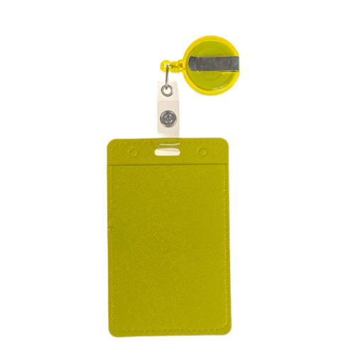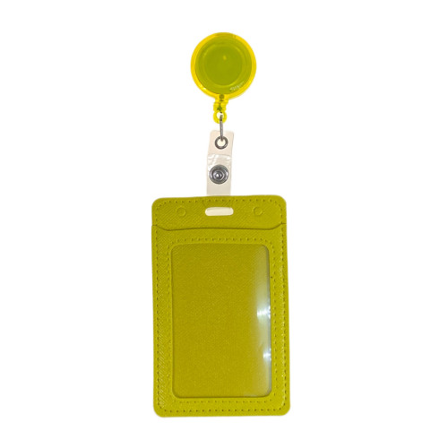 Бейдж с лентой на рулетке вертикальный, цвет желтый