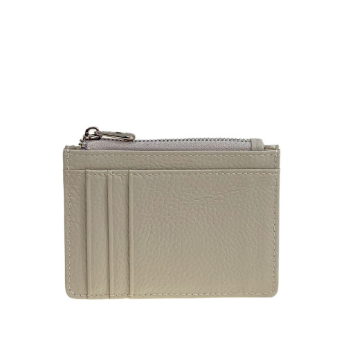 Простой и удобный картхолдер из натуральной кожи. Имеет по одной горизонтальной прорези с 3-мя отсеками для пластиковых карточек с каждой стороны. Сверху есть карман на молнии.