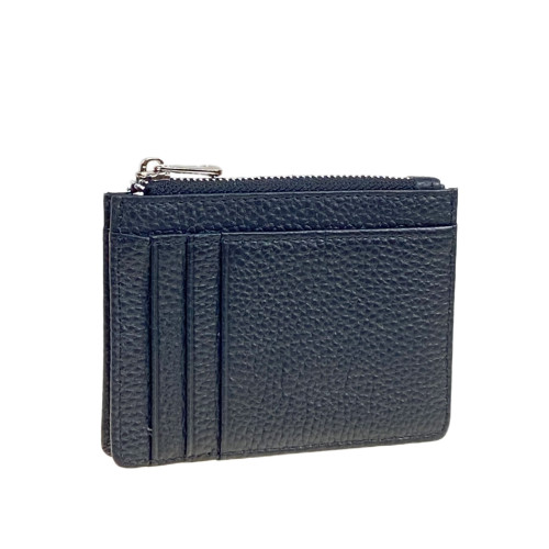 Простой и удобный картхолдер из натуральной кожи. Имеет по одной горизонтальной прорези с 3-мя отсеками для пластиковых карточек с каждой стороны. Сверху есть карман на молнии.