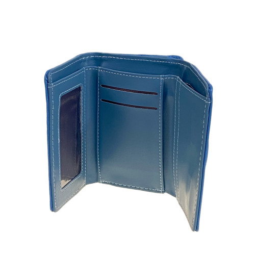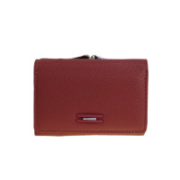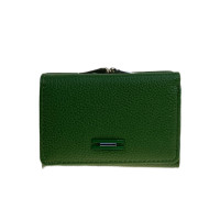 Компактный женский кошелёк из искусственной кожи. Закрывается на скрытую магнитную кнопку, внутри два отделение под купюры, отделение на молнии, на развороте: 2 отсека для пластиковых карт, 3 открытых отделения, 1 отделение с пластиковым окном. Снаружи отделение на фермуаре.