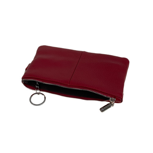 Женский кошелёк из натуральной кожи. Закрывается на молнию, внутри открытое отделение под купюры, отделение на молнии. Снаружи на передней стенке отделение на молнии. В комплекте рмешок.