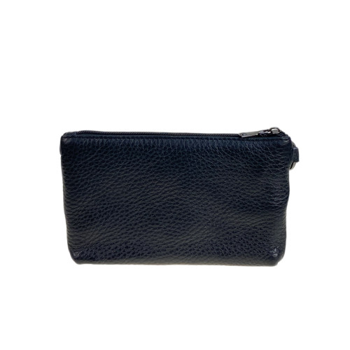 Женский кошелёк из натуральной кожи. Закрывается на молнию, внутри открытое отделение под купюры, отделение на молнии. Снаружи на передней стенке отделение на молнии. В комплекте рмешок.