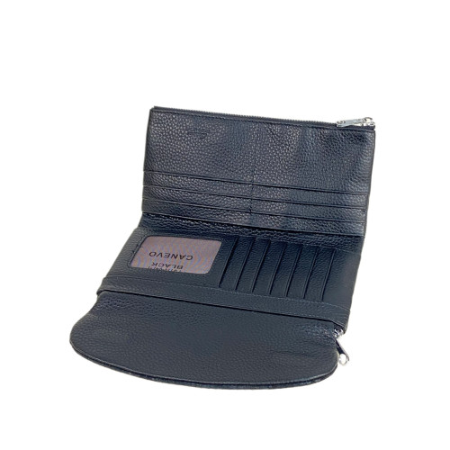 Полноразмерный женский кошелёк из натуральной кожи. Закрывается на клапан со скрытой магнитной кнопкой, внутрина развороте два открытых отделения, 13 отсеков для пластиковых карт . Снаружи два отделения на молнии.