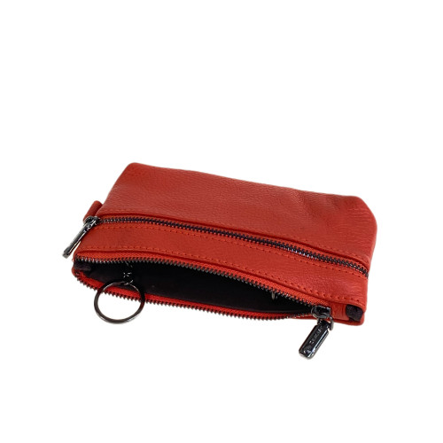 Женский кошелёк из натуральной кожи. Закрывается на молнию, внутри открытое отделение под купюры, отделение на молнии. Снаружи на передней стенке отделение на молнии. В комплекте рмешок.
