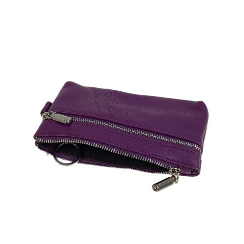 Женский кошелёк из натуральной кожи. Закрывается на молнию, внутри открытое отделение под купюры, отделение на молнии. Снаружи на передней стенке отделение на молнии. В комплекте рмешок.