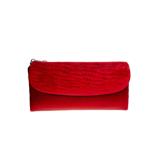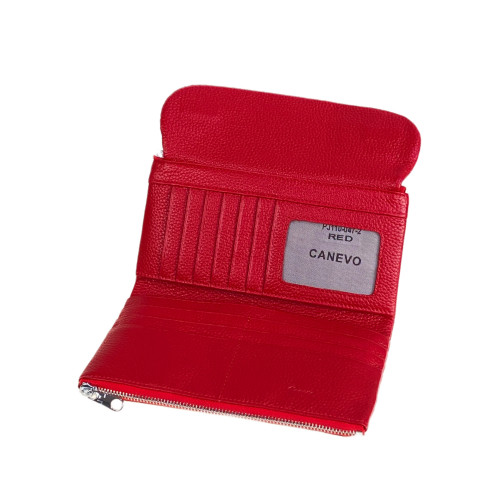 Полноразмерный женский кошелёк из натуральной кожи. Закрывается на клапан со скрытой магнитной кнопкой, внутрина развороте два открытых отделения, 13 отсеков для пластиковых карт . Снаружи два отделения на молнии.