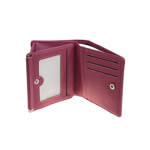 Компактный женский кошелёк из натуральной кожи. Закрывается на магнитную кнопку, внутри отделение под купюры, на развороте: 3 отсека для пластиковых карт, 2 открытых отделения, 1 отделение с пластиковым окном. Снаружи отделение для мелочи на магнитной кнопке.