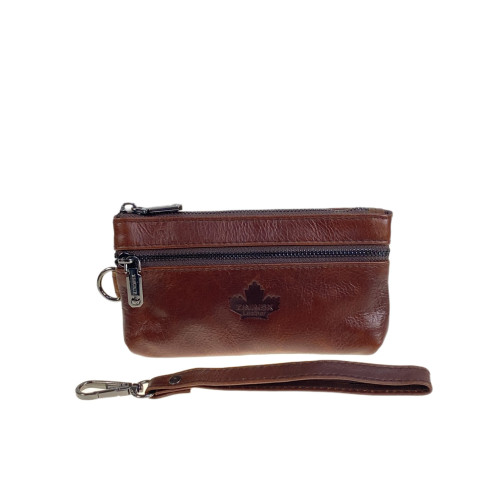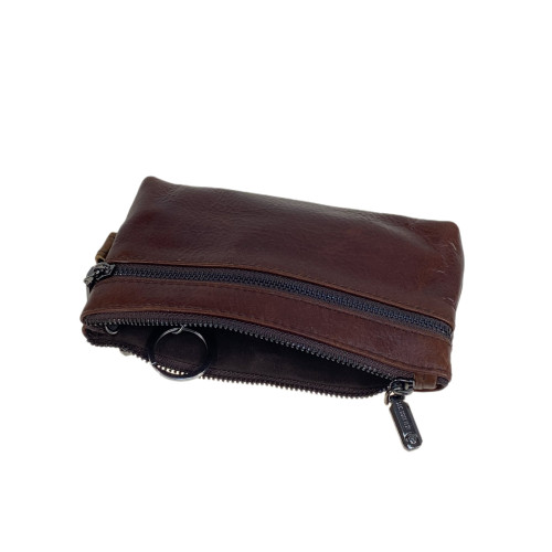 Женский кошелёк из натуральной кожи. Закрывается на молнию, внутри открытое отделение под купюры, отделение на молнии. Снаружи на передней стенке отделение на молнии. В комплекте рмешок.