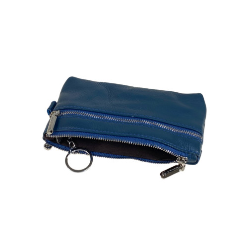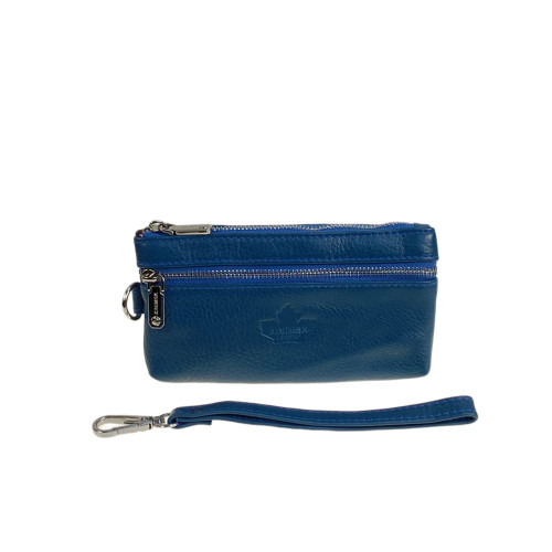 Женский кошелёк из натуральной кожи. Закрывается на молнию, внутри открытое отделение под купюры, отделение на молнии. Снаружи на передней стенке отделение на молнии. В комплекте рмешок.