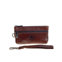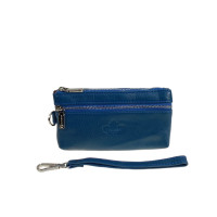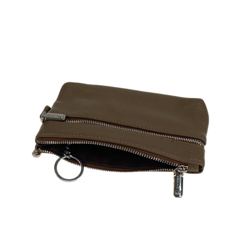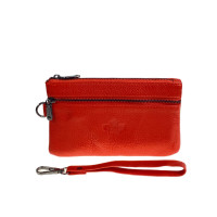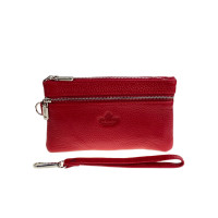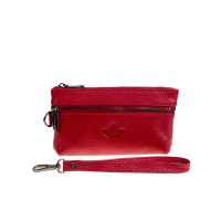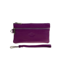Женский кошелёк из натуральной кожи. Закрывается на молнию, внутри открытое отделение под купюры, отделение на молнии. Снаружи на передней стенке отделение на молнии. В комплекте рмешок.