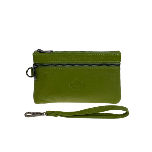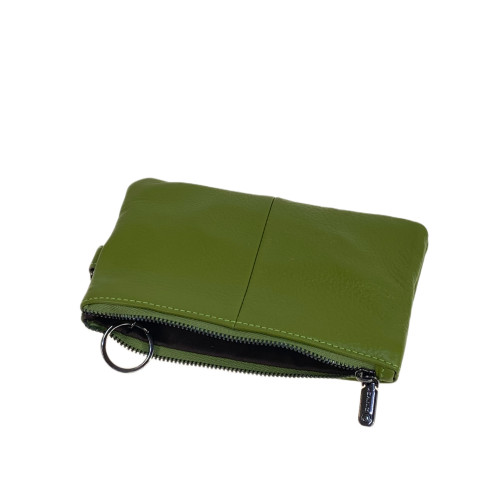 Женский кошелёк из натуральной кожи. Закрывается на молнию, внутри открытое отделение под купюры, отделение на молнии. Снаружи на передней стенке отделение на молнии. В комплекте рмешок.