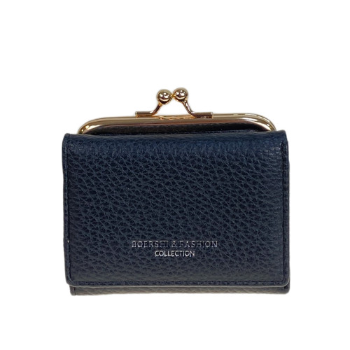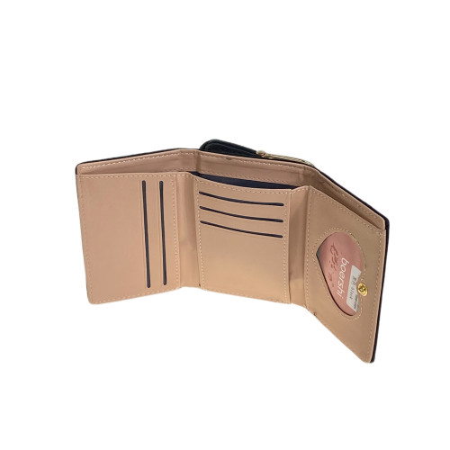 Простой и удобный женский кошелёк из искусственной кожи. Закрывается на магнитную кнопку, внутри отделение под купюры, 6 отсеков для карт. Снаружи, отделение с фермуаром.