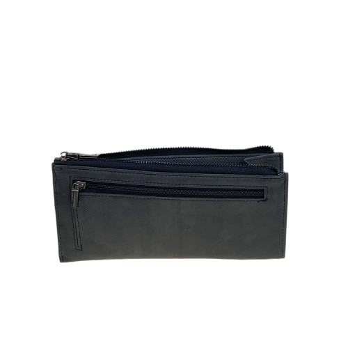 Женский кошелёк из искусственной кожи. Кошелёк закрывается на молнию. Внутри полноразмерное отделения под купюры, два отделения на молнии и 8 отсеков для пластиковых карт. Снаружи карман на молнии.